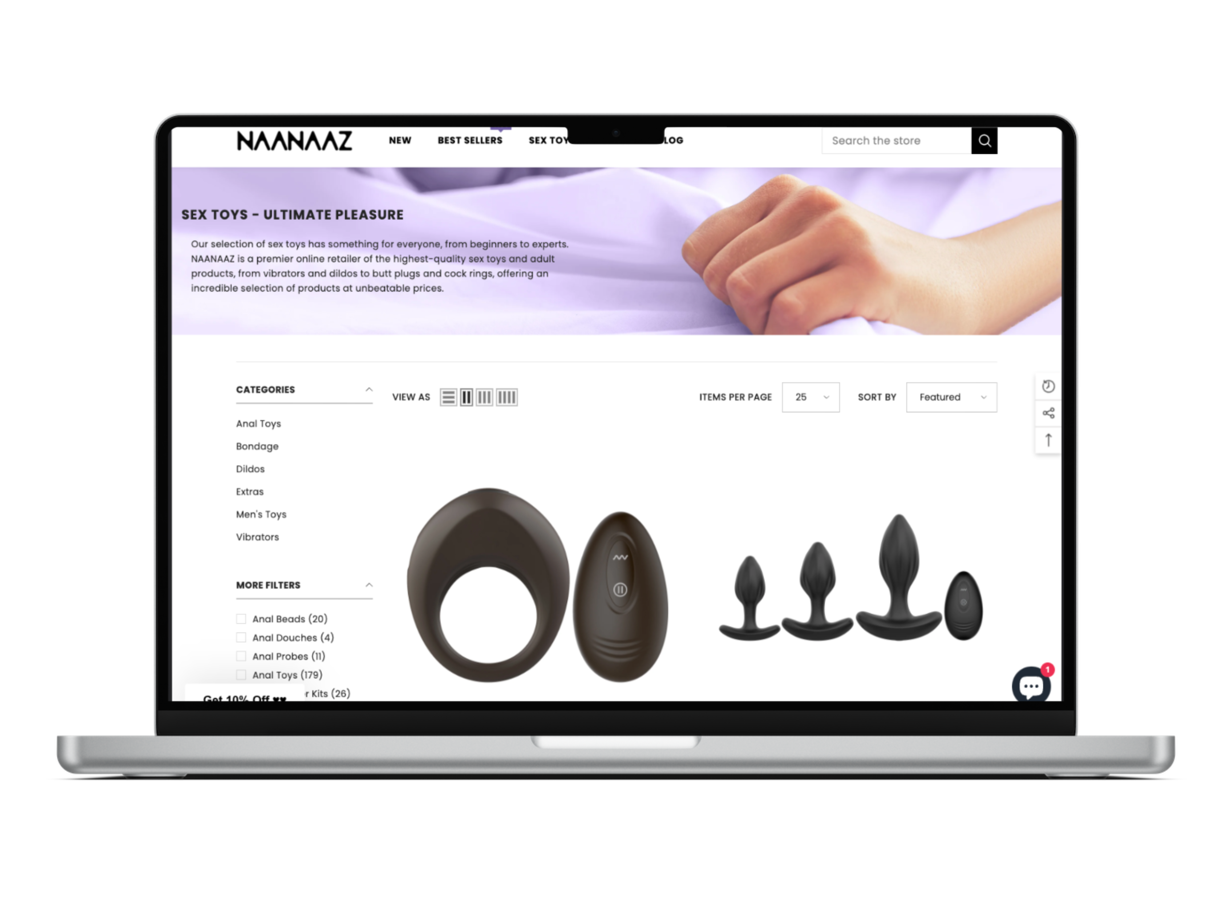 NAANAAZ offers a curated collection of intimate pleasure products.